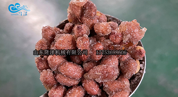 休闲食品有好多需要间接或者直接的把糖均匀的裹到休闲食品表面上,也是整个产品收尾的精华部分,需要有翻炒均匀的每 一刻裹上糖衣,隆泽机械大型全自动裹糖机、巴旦木、杏仁 、桃仁、核桃仁,裹糖油炸一体机器 ,把化好的糖液和准备好 的产品倒入锅内,开启搅拌裹糖机会慢慢开启转动,糖液和物料上下翻动着,让每一棵产品穿上带糖的衣服。