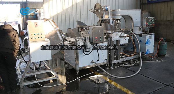 主要由内网筐、搅拌系统、内锅体和可倾架组成;内网筐、内锅体是由专用模具整体冲压成型,搅拌器刮边刮底搅拌,机械传动。本设备设有电机、电源指示、锅内油温由红外线测温实时显示油炸温度,搅拌电机功率为1.5KW。加热方式为:天然气、液化气、导热油电加热、电磁加热。隆泽公司油炸和裹糖一体机器,节省人力,把传统的手工油炸革新。全自动油炸锅,更简单操作,更安全卫生。