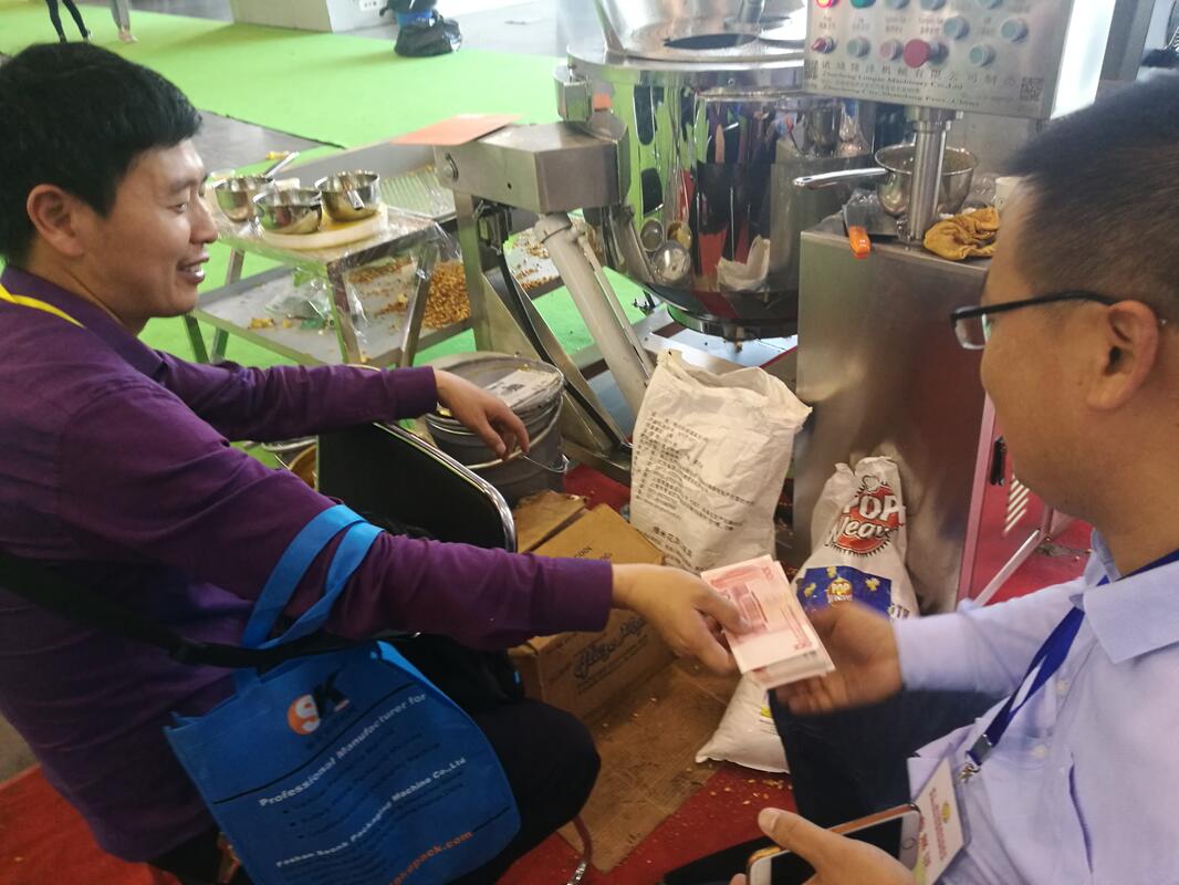 爆米花机现场演示 ,好设备好项目大家都看的到。