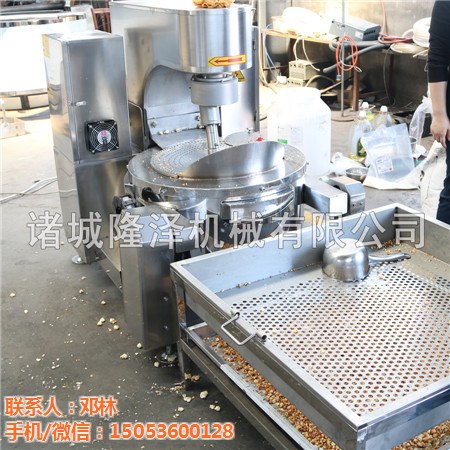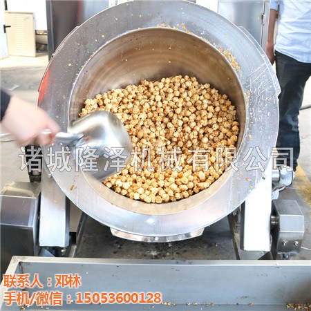 隆泽大型电磁加热爆米花机可一次性出料5kg左右。时间仅需4分钟。一条线可配置3-5台, 那每小时产量即在180-300kg左右。可有效通过自动化设计与制造为企业节约人力,提高出品率,降低生产成本。