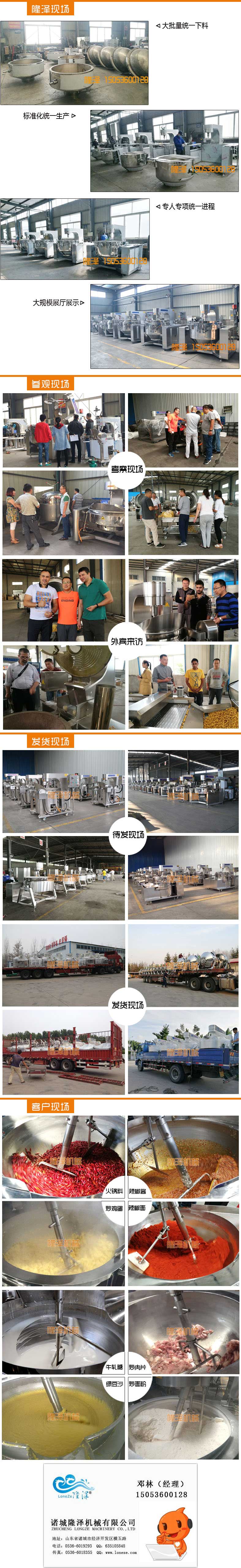 隆泽燃气炒菜锅优势:质量高:该系列产品采用北海封头,一次冲压成型的半球形不锈钢锅体适用性好:加热方式可选择采用煤气、然气、液化气等加热形式安全性好:本产品凡接触食品部分皆为sus304不锈钢技术先:搅拌系统采用自转公转相结合的方式,模拟人工翻炒,360度搅拌均匀不糊锅干净卫生:使用先进的传动与密封结构,使传动部分与锅内洁净卫生