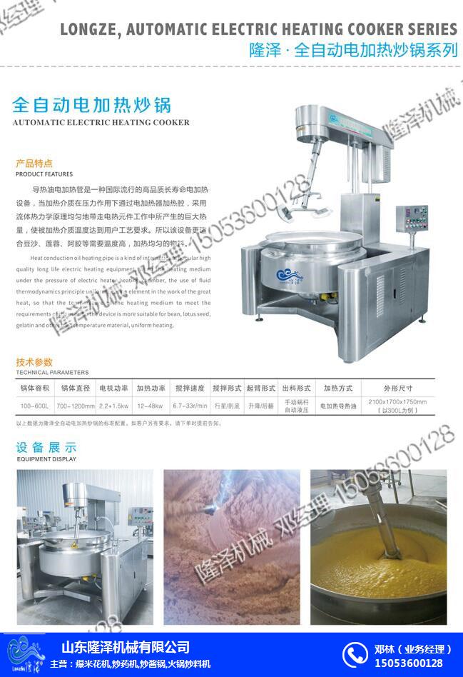 隆泽全自动炒药的好处,隆泽机械电磁全自动炒药机多个搅拌匙共同作业,搅拌更均匀,设备安全节能,配置多重安全保护装置,减少意外事故的发生,绿色环保,使用电磁加热设备无废气、废渣和噪音污染,干净、便捷。锅体自动翻转出料,排料快,彻底。360度刮底无死角。温度控制准 0-350度8档控制随心所欲。环保安全放心 没有煤气泄漏等安全隐患。