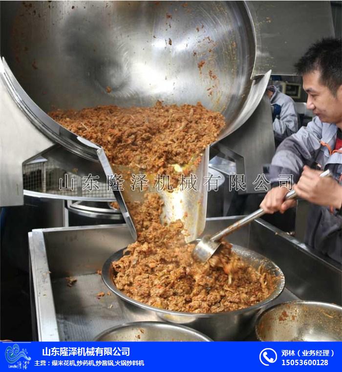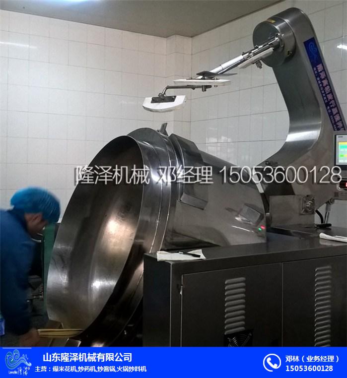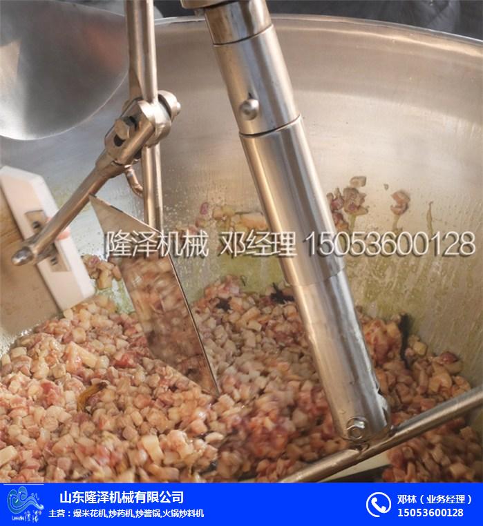 隆泽自动炒酱机主要由锅体、架体、搅拌系统、加热系统、调速传动装置、搅拌轴、锅体翻转系统等组成,调速传动装置:搅拌轴使用先进的转动与密封结构,使锅内洁净,卫生;调速采用变频调速动力,运行平稳。隆泽火锅底料炒锅使用 环形燃烧器,燃烧充分,热效率高,采用行星式搅拌,使物料搅拌混合更均匀,刮底更彻底,炒出的火锅底料更香。隆泽火锅底料炒锅是您批量生产火锅底料的shou选,欢迎各界新老客户前来我厂考察了解!