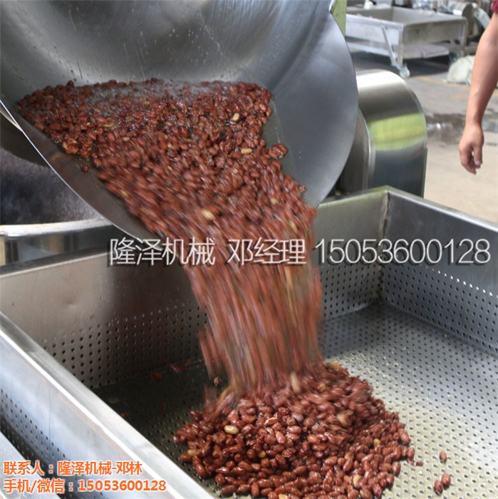 隆泽搅拌油炸挂糖炒锅主要由内网筐、搅拌系统、内锅体和可倾架组成;整锅液压油管联和内框自动出料,自动滤油,工厂蜂蜜花生的做法,安全、稳定、可靠。加热方式有燃气、燃气导热油、电磁(可选)具有受热面积大,热效率高,带无线测温装置,可实现精准控温。操作简单,炒制过程中残渣不易粘锅,便于清理。山东隆泽长期供应全油炸生产线设备,欢迎各界新老客户前来我厂考察了解!邓经理