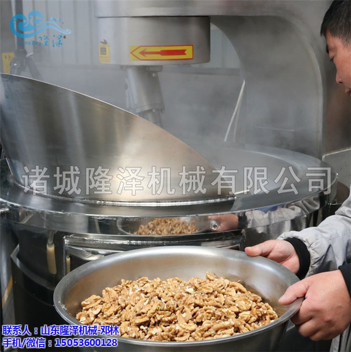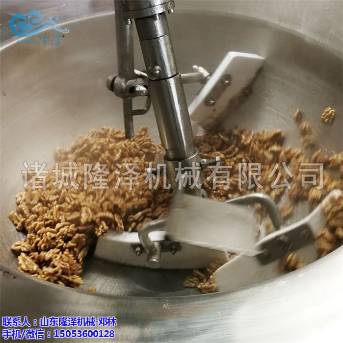 隆泽油炸机适用范围:休闲食品:琥珀桃仁、油炸腰果等裹糖类干果油炸工艺。隆泽油炸机升温快,温度高,锅面可达数百度,使物料通过美拉德反应彻底达到炸炒效果。结构有内网筐、内锅体是由专用模具整体冲压成型,搅拌器刮边刮底搅拌,机械传动。通过自动化设计与制造为企业节约人力,解决了坚果类裹糖食品在油炸过程中油发黑的情况, 极大的节约了成本,提高了生产效率。隆泽自动搅拌炒锅 炒糖的机器炒货出入锅十分方便,迅速快捷,省事不费力,干净又卫生。