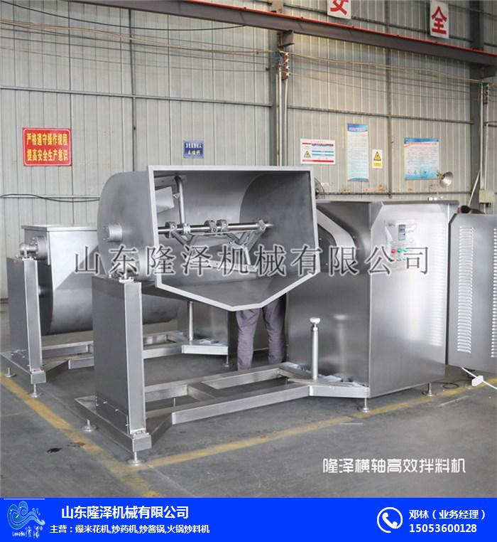 隆泽横轴搅拌机可用于豆沙、果蓉、果酱、酱类、肉松、鱼儿饵料等食品加工以及中药等高粘度物料煮制和真空压缩。 使用真空炒制可降低炒制温度,特别适用于热敏感原料的炒制,米花糖搅拌锅横轴,避免了因过度受热引起颜色及口味的劣化,保持了原料原有的色、香、味。提高了炒制效率,并降低能耗,缩短了炒制时间。而锅体的开盖卸料复位采用液压机械传动控制,操作方便。