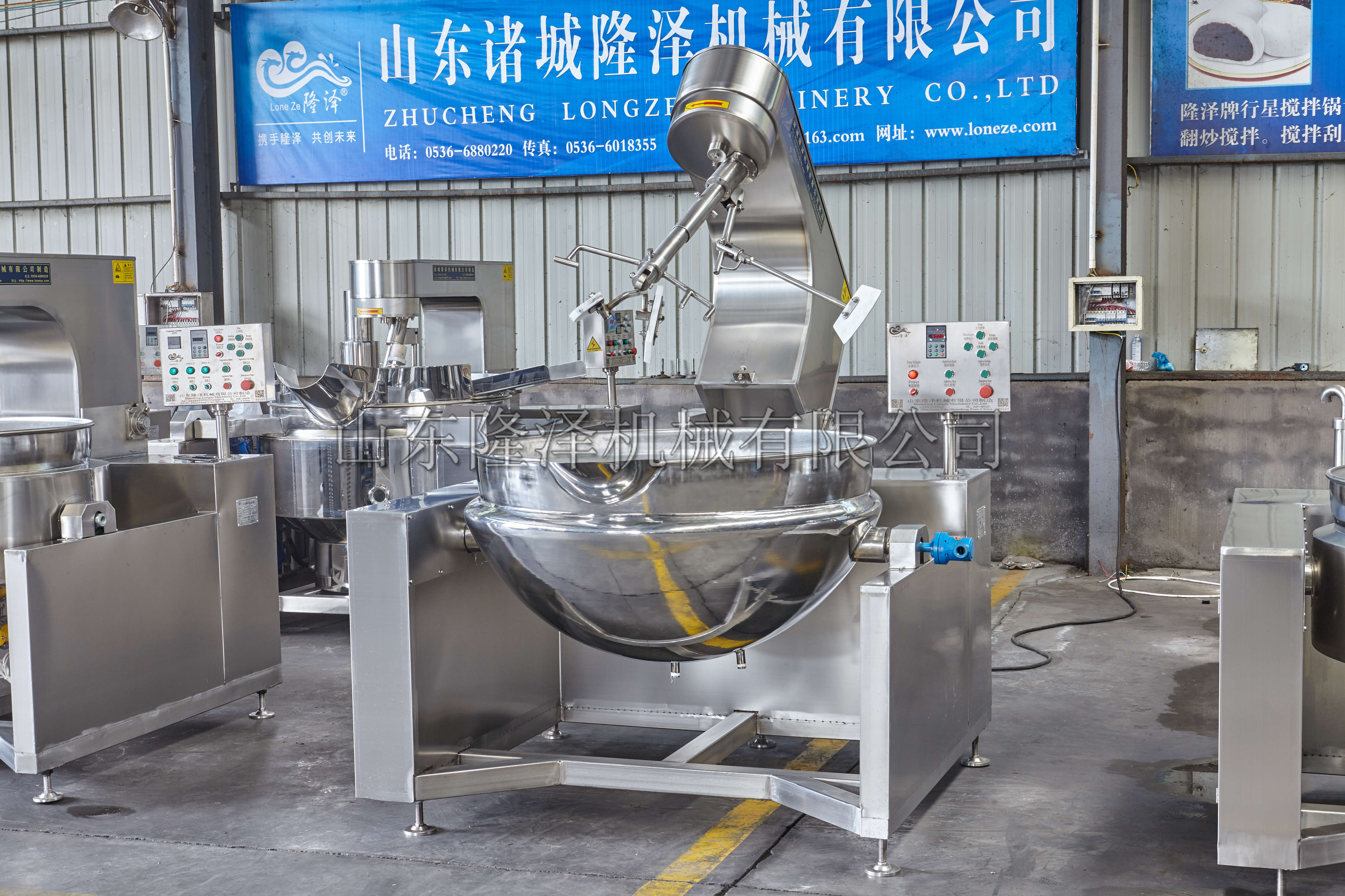 3、搅拌方式:采用特殊的倾斜式传动,使用的行星式搅拌器与锅体充分接触。搅拌系统采用自转公转相结合的方式,其传动比为不整数传动比,保证锅内无任何搅拌盲点。使用传动与密封结构,使传动部分与锅内洁净、卫生。具有升温快,加热均匀及加热温度易于控制等优点。