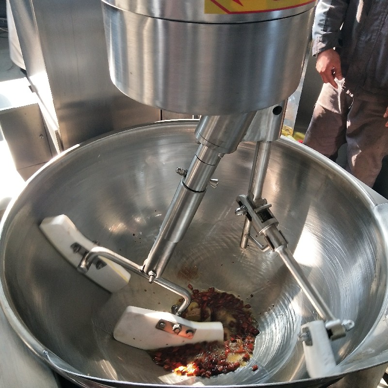 1、 小龙虾搅拌炒锅的锅体是的一次冲压成型的半球体不锈钢锅体,整体圆度误差小,搅拌器与锅体贴合度高,避免糊锅现象出现。