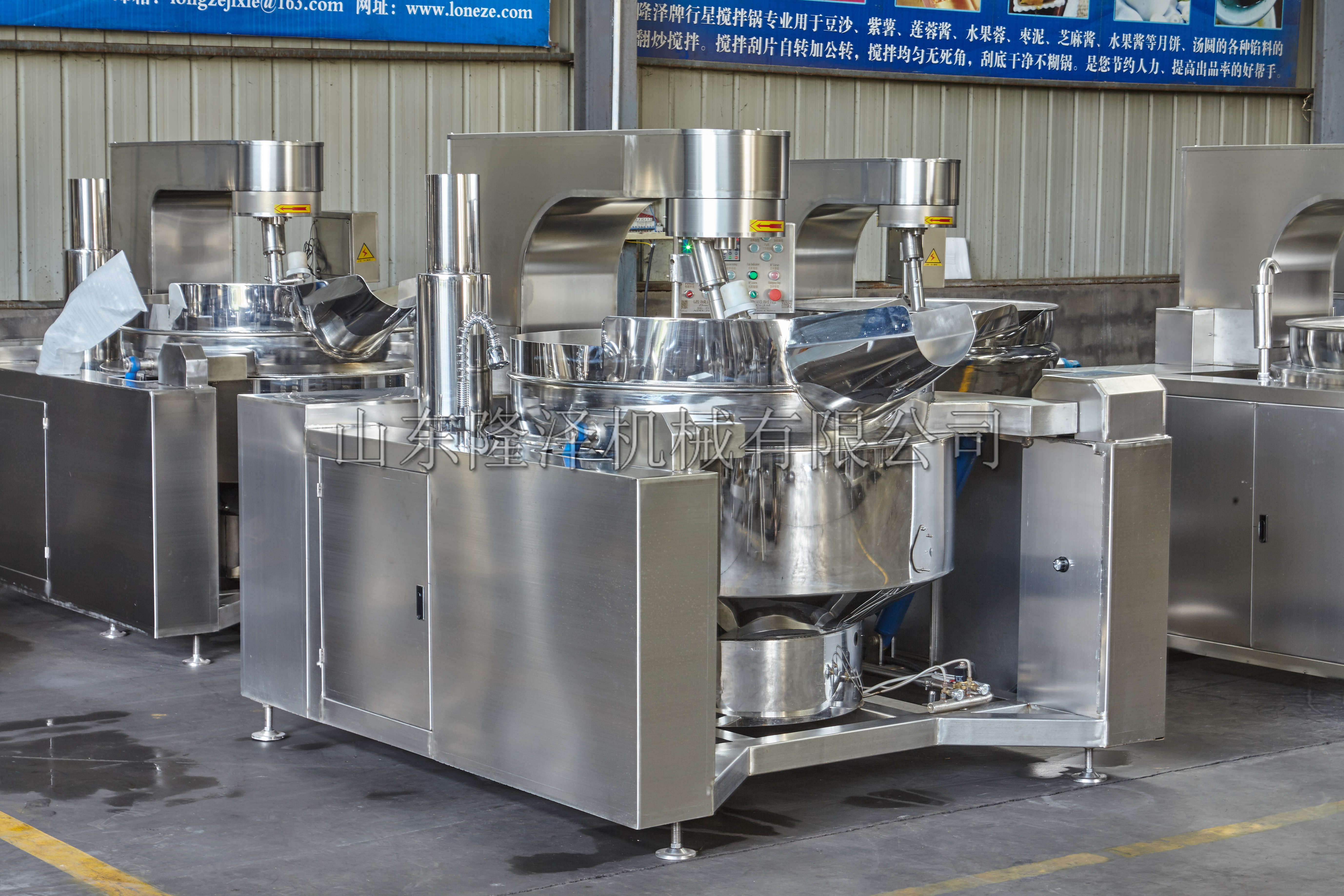 1.电磁型搅拌炒锅锅体为一次冲压成型的半球形304不锈钢锅胆,采用电磁加热形式,炒锅搅拌方式采用特殊的倾斜式传动,炒锅使用的行星式搅拌器与锅体充分接触,炒锅实现传动公转与自转的不整数传动比,使锅内无搅拌死角。