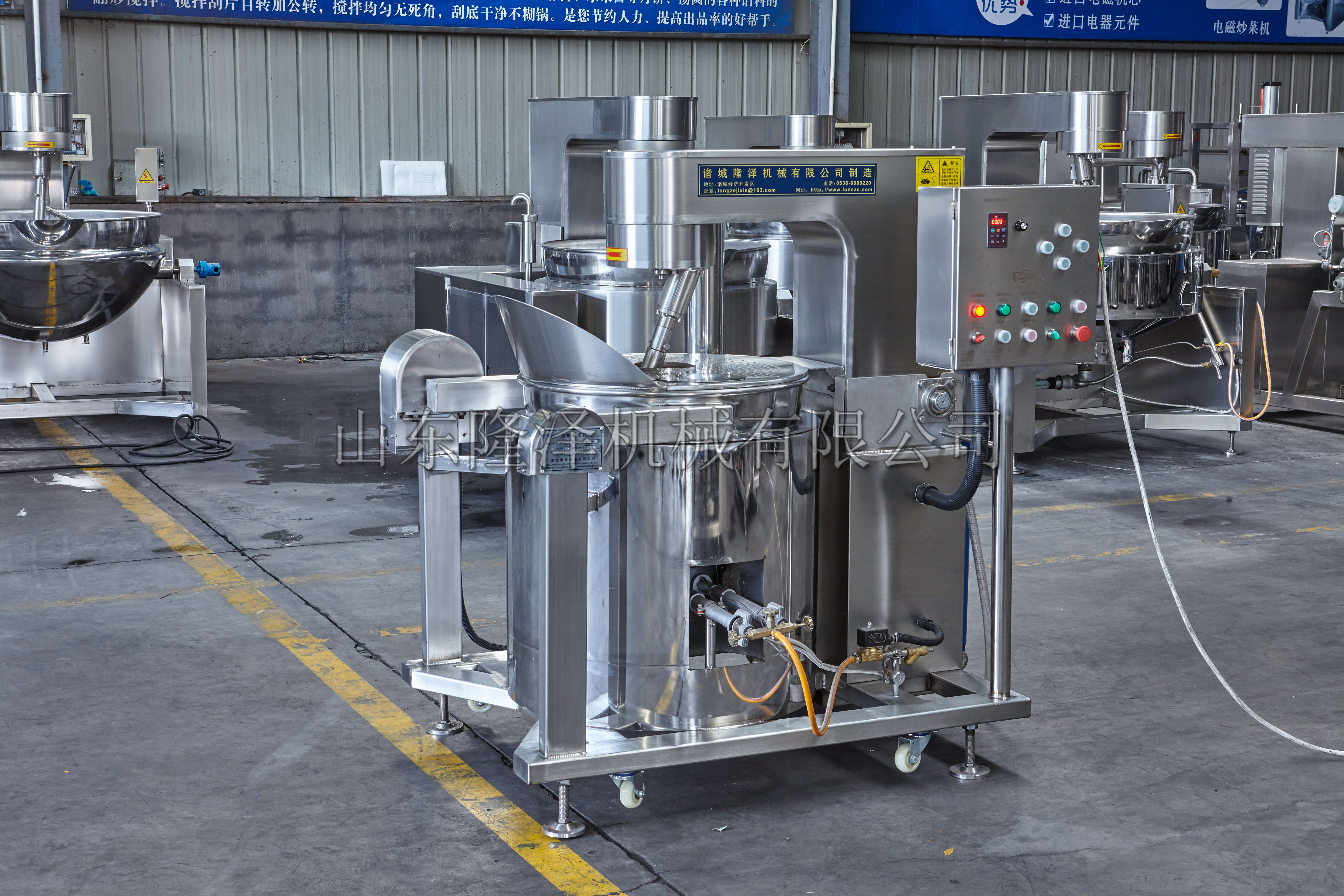 爆米花炒锅锅体采用一次旋压成型的不锈钢封头,保证了锅内的平整光滑,有效防止粘锅糊锅等现象。物料搅拌采用变频调速动力,全自动搅拌,提供稳定的搅伴速度让爆米花品质稳定。自动液压升降搅拌臂,自动液压翻锅,且提高了翻锅角度,让爆米花尽快脱离余热锅体。