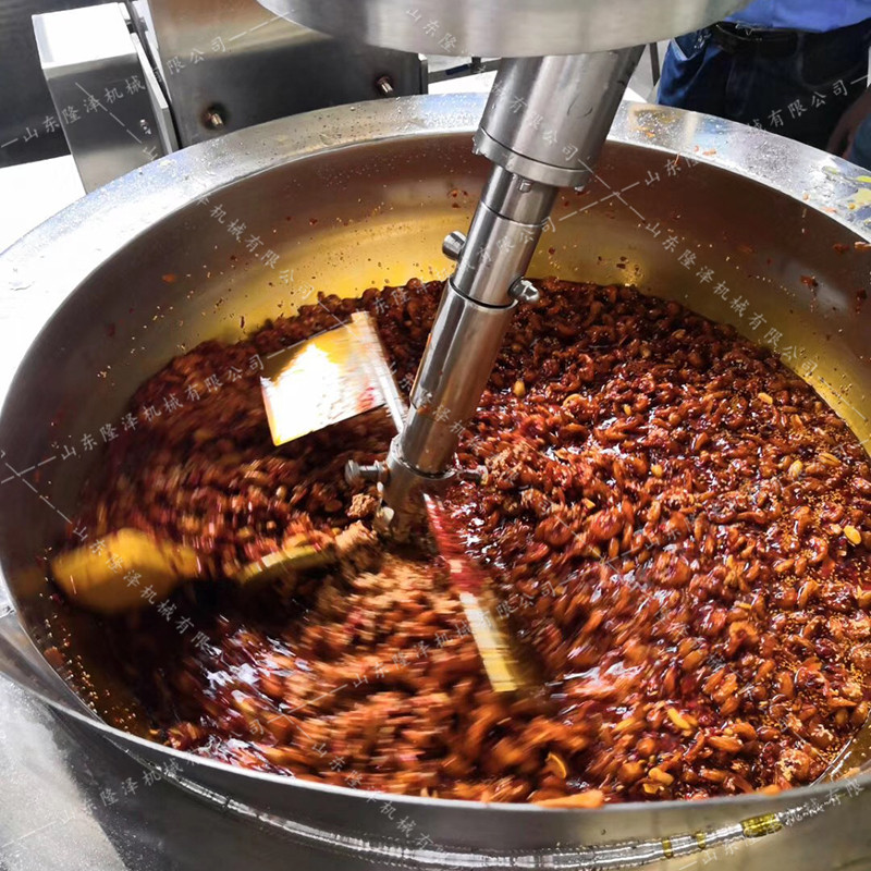 不管是电磁加热的还是燃气加热的,我们的锅体与搅拌叶片紧密接触,使物料搅拌均匀。不粘锅,动力采用日本无机调速器与涡轮,蜗杆,减速机的完美结合,传动部分公转自转的不整数传动比,使锅内搅拌无死角,使用先进的传动与密封接够,使传动部位与锅内洁净、卫生, 火锅底料行星搅拌炒锅采用液压式翻臂,翻锅出料,省力、省时、省工、不失为性能优良的食品酱料底料加工设备。